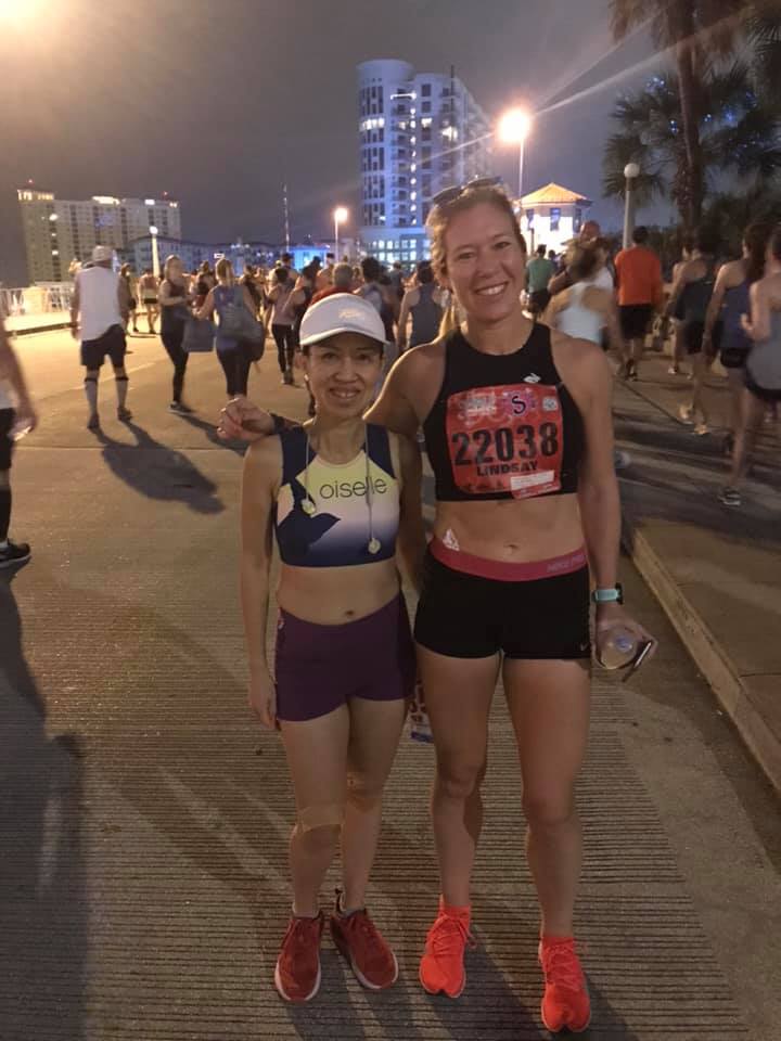 Our hotel was close to I jogged toward the start and on my way, found fellow Oiselle bird and #houmarathon photographer friend, Elaine! She’d traveled all the way from Chicago and was running all four races…crazy. I wanted to make sure I got a solid warm up and had time to hit a port-a-potty again, so after I quick picture, I was on my way.