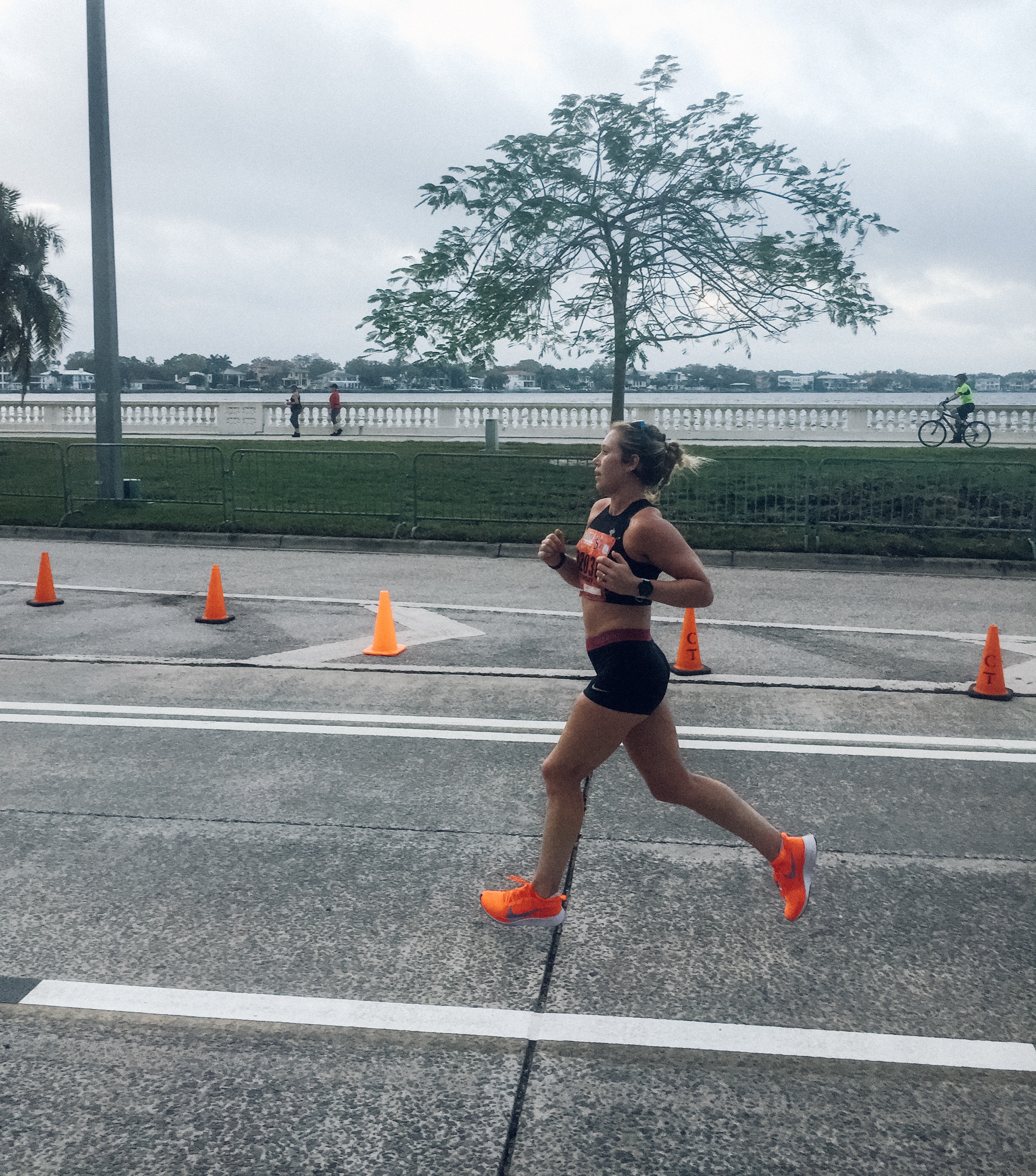 I started to feel the heat here. There wasn’t a ton of air flow or breeze on the island so I definitely started to feel warm! There were a couple ladies that started pushing the pace early on so I kept my eyes on them and then passed them as they faded early.