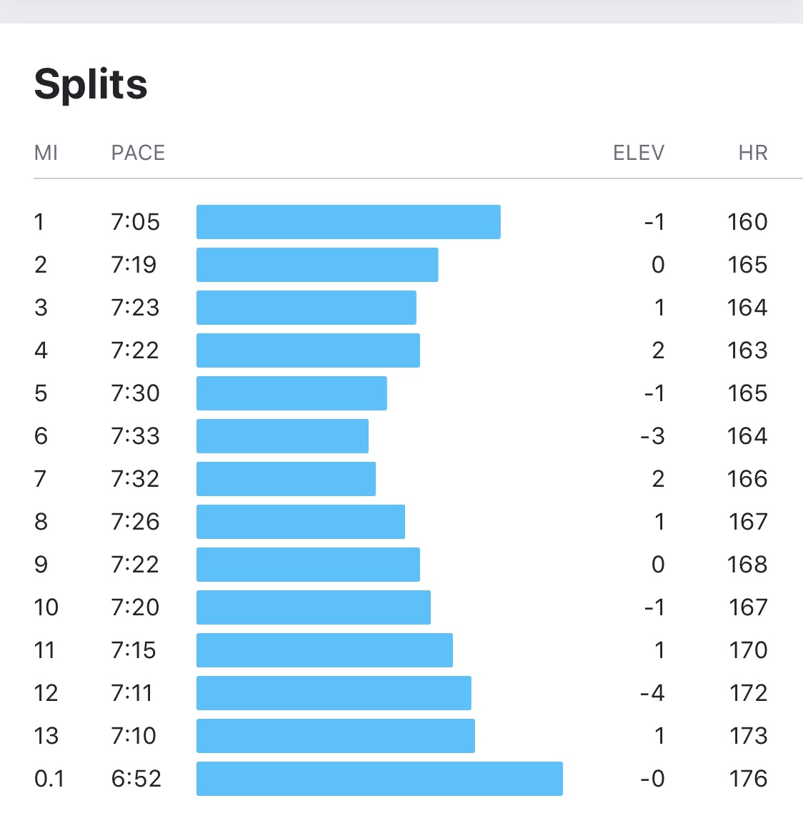 Starting behind the speedies had its consequences! While the first mile felt easy, I knew when it beeped at 7:05 I’d gone out a bit fast!